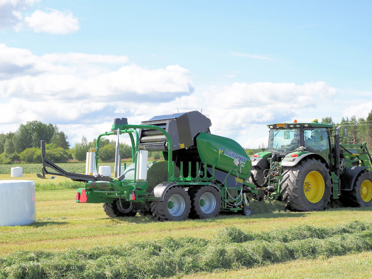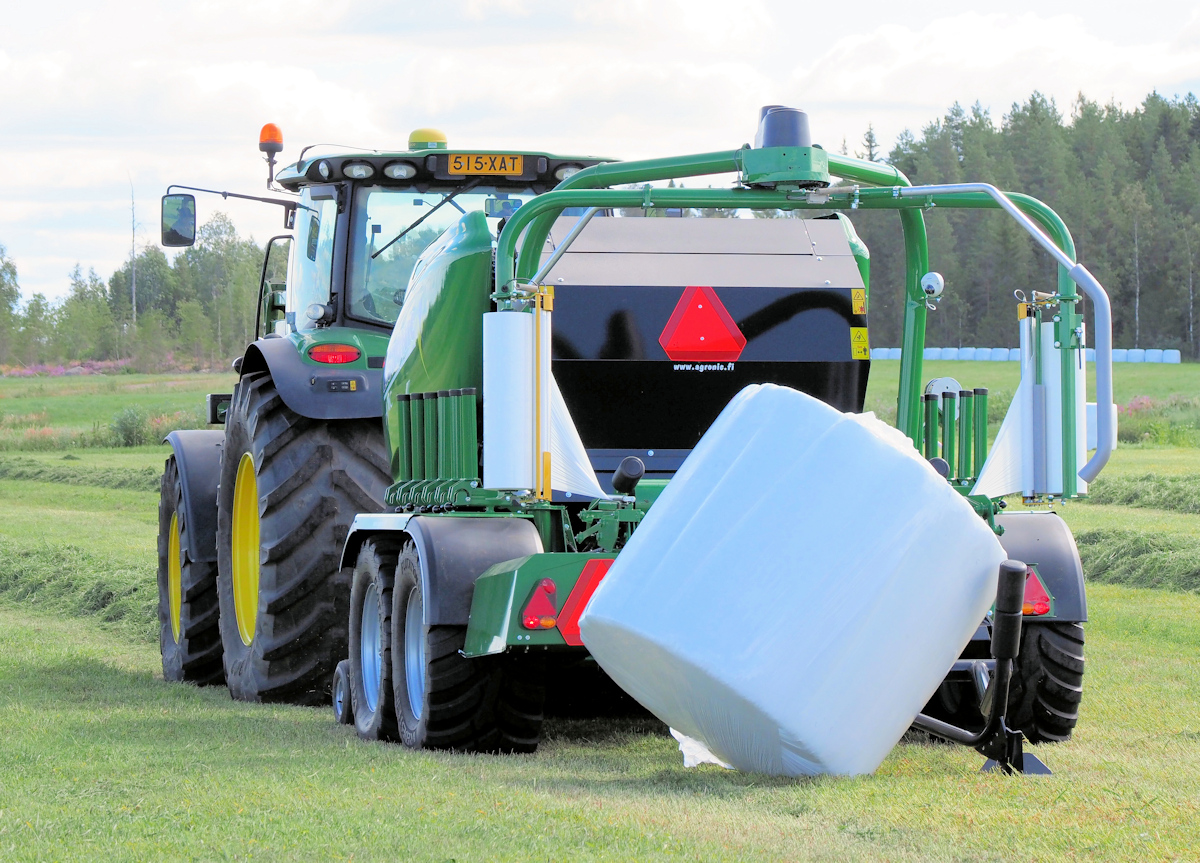 Somijas uzņēmums Agronic Oy ir viens no pirmajiem kombinēto agregātu prese ar ietinēju ražotājiem. Profesionālā prese ar ietinēju ir izstrādāta jebkuriem ekspluatācijas apstākļiem. Lielizmēra pacelšanas mehānisms un smalcinātājs ar 25 nažiem, ir aprīkots ar automātiku, kas nodrošina vieglu masas pacelšanu un ātru smalcināšanu. Kameras hidrauliskā bloķēšana, spiediena kontrole un izturīgi valči nodrošina blīvu rituļu veidošanu. Kā papildus aprīkojums tiek piedāvāts konservantu vai ierauga iestrāde un plēves ietīšana tieši presēšanas kamerā.