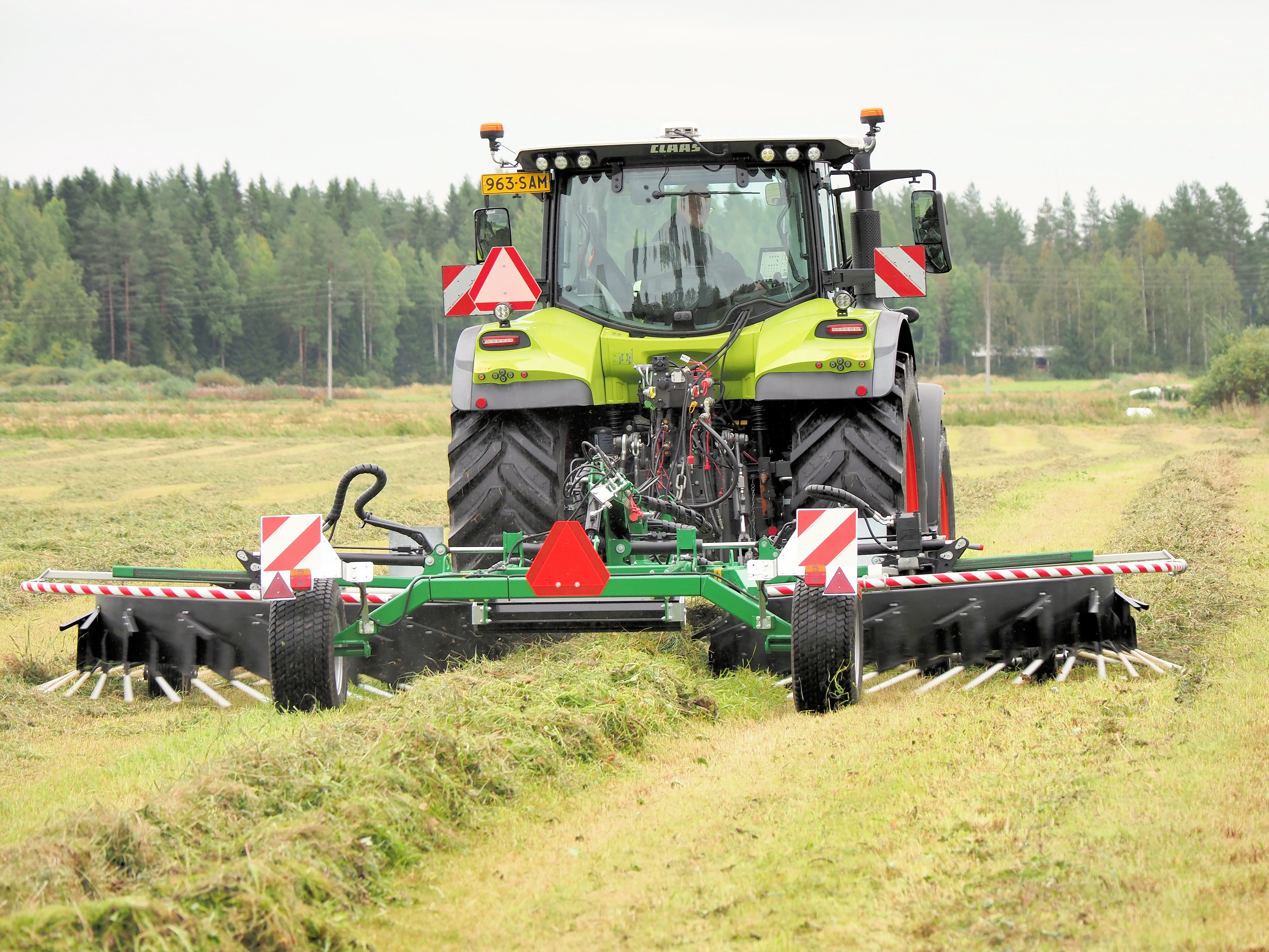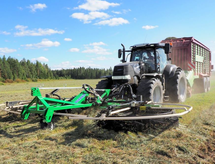 Rotoru vadības slēdzim ir trīs pozīcijas: kreisais rotors, labais rotors un abi vienlaicīgi. Transporta stāvoklī platums ir 3, 0 m. Vālošanas rotori aprīkoti ar poliamīda zariem, kuri ir izturīgi pret nodilumu, efektīvi darbībā un nepieprasa lielu traktora jaudu. Šis apstāklis arī nodrošina iekārtas ilgstošu bezatteikumu darbību. Vāla platumu regulējam tā, lai to neskartu aiz grābekļa braucošā traktora riteņi. Grābekļa darbības princips nodrošina, ka vāls paliek viegls un gaisīgs, tas ir sajaukts un nav savērpts. Grābeklis ir paredzēts lietot gan ar standarta vai lielajām rulonu savācējpresēm, gan ar savācējpiekabēm.